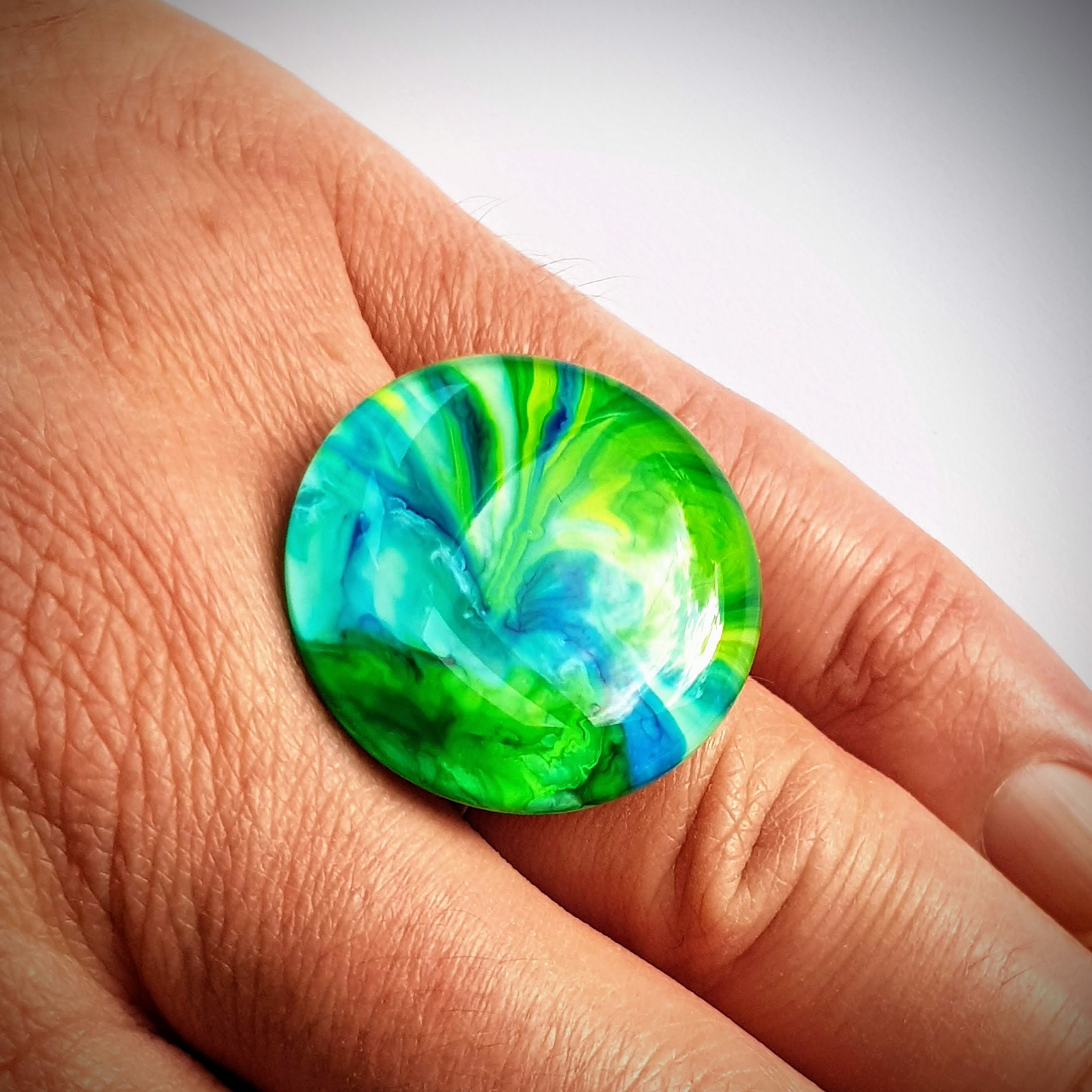 Beautiful piece - great as a thumb ring, where I can gaze into the green depths while I do hand sewing.